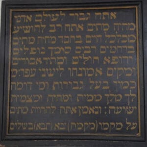 The prayer board shown in the above photo is from the Bowthorpe cemetery chapel and is typical of its type found at Jewish cemeteries. The Hebrew text is the second paragraph of the “Amidah” (the Standing Prayer) which we say aloud in the morning and silently in the evening.