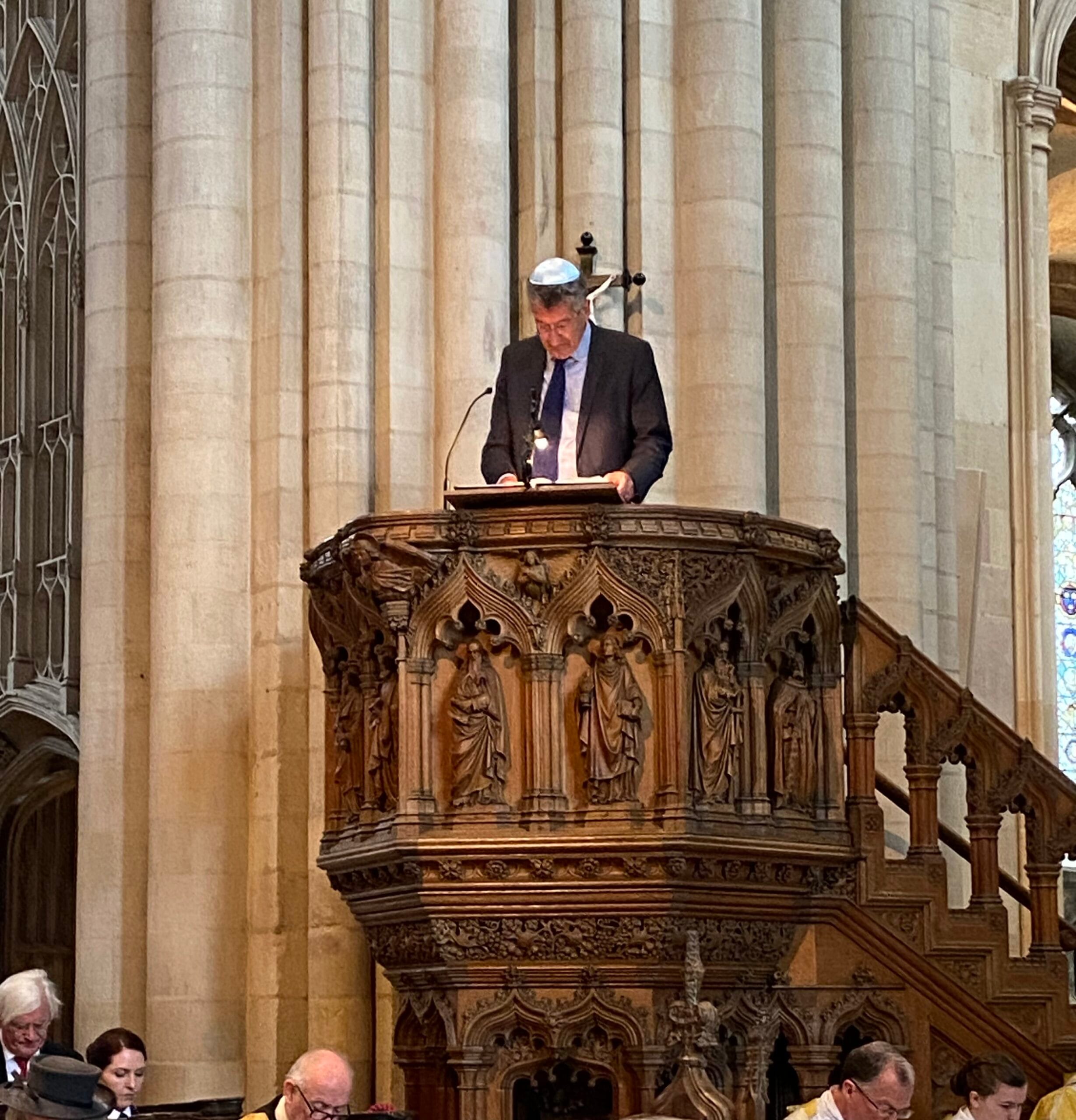 This was to plant a hazel sapling given by the Bishop of Norwich, Bishop Graham, hotfoot from his Coronation duties at Westminster Abbey, as a mark of friendship between the Church and the Jewish community. This was all arranged by local members of the Council for Christians and Jews, and we were delighted that their local Chair Bishop David Gillett and a number of their members were able to join us.